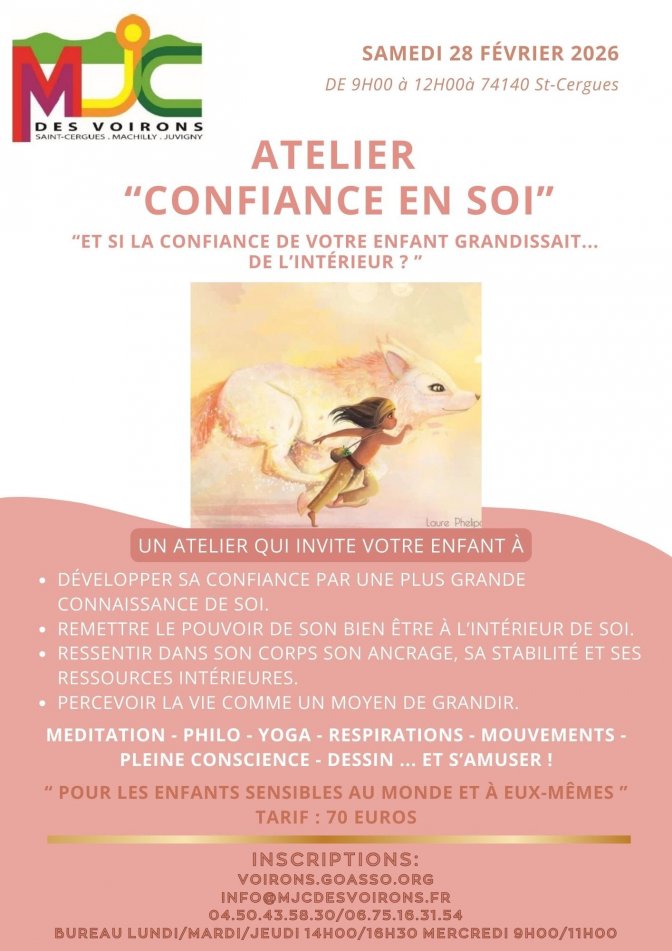 Le samedi 28 février 2026, de 9h à 12h, la MJC des Voirons propose un atelier ludique et bienveillant pour aider les enfants à développer leur confiance en eux.