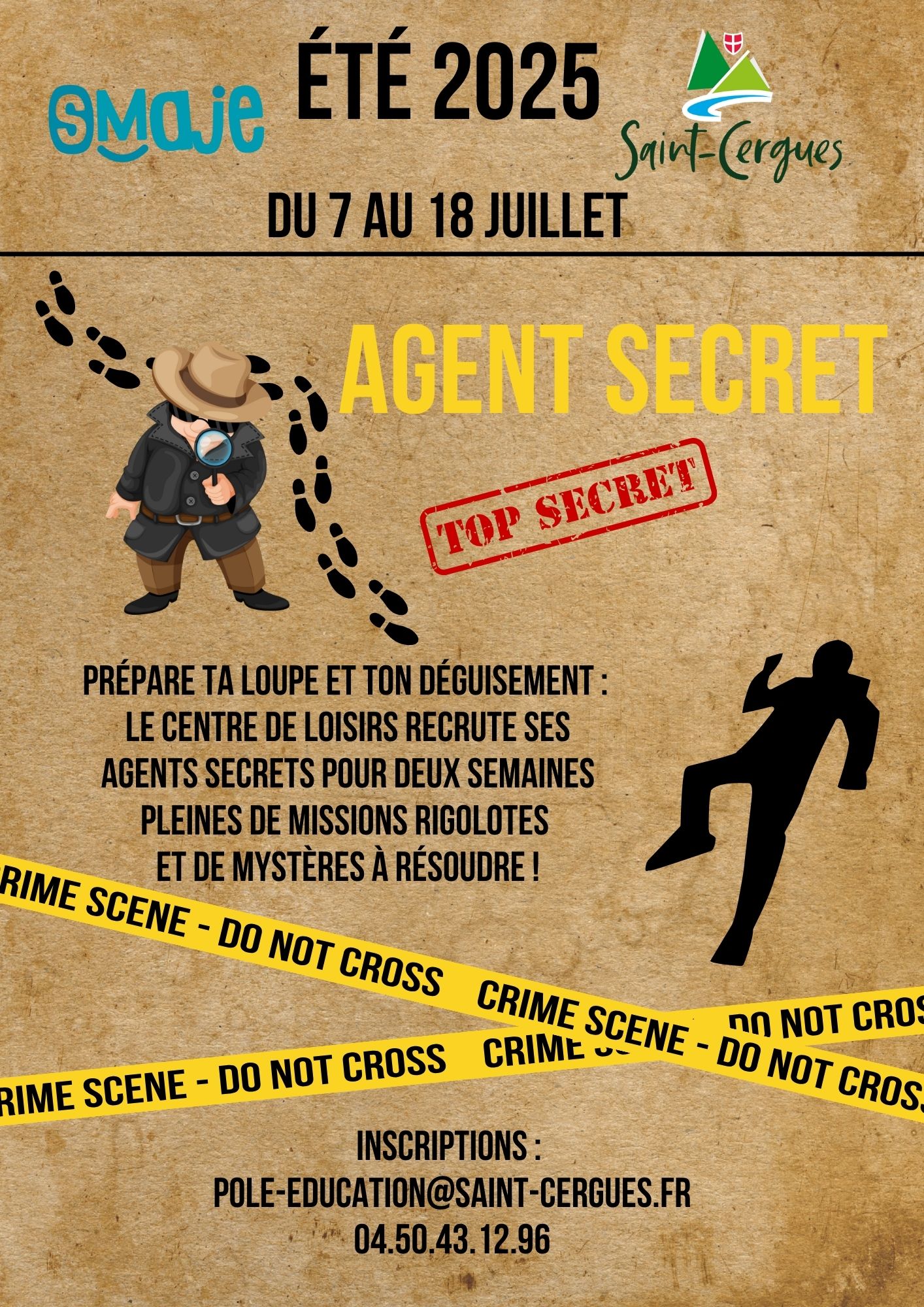 | Du 7 au 18 juillet : Thème : Agent secret Jeux de pistes, énigmes, missions et enquêtes pour se mettre dans la peau d’un véritable espion !  |