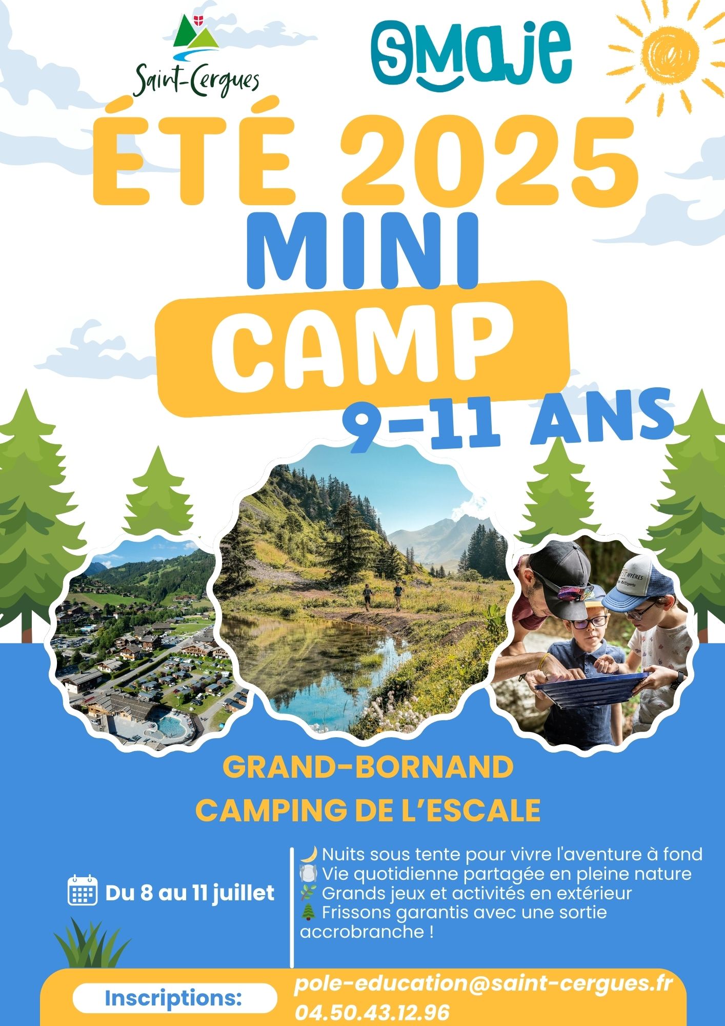| Du 8 au 11 juillet : Mini-camp au Grand-Bornand (9-11 ans) Nuits sous tente, jeux en pleine nature, accrobranche… une aventure inoubliable au grand air !  | |