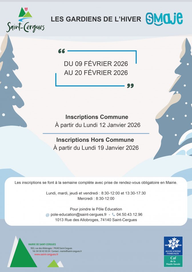 Pour rejoindre l’aventure et vous inscrire, contactez le pôle éducation au 04.50.43.12.96 ou par mail à pole-education@saint-cergues.fr