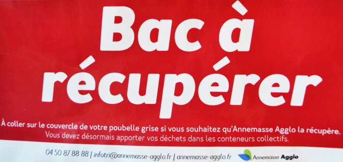 - Soit coller le sticker « Bac à récupérer », déposé dans votre boite aux lettres, sur votre poubelle individuelle qui sera ramassée dans votre rue les jeudis 2, 9 et 16 mai.