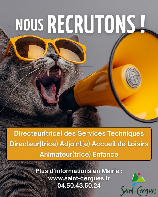 - Un Animateur(trice) enfance : afin de renforcer l’équipe chargée de l’encadrement des enfants de 3 à 12 ans durant l’ensemble des accueils périscolaires (dont mercredis) et extrascolaire (vacances), la commune de Saint-Cergues est à la recherche d’un(e) animateur(trice) à plein temps pour évoluer dans un cadre professionnel reconnu, dynamique et motivant. Retrouvez tous les détails de l’annonce